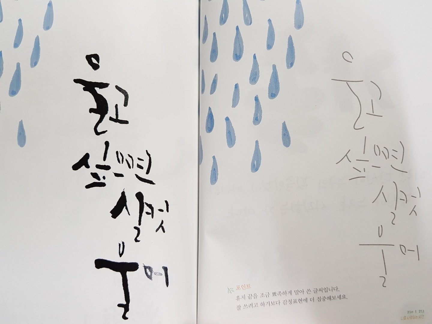 그래서 오래전 출간 이벤트로 당첨되어 받았지만, 책장에서 먼지만 쌓이고 있던 '힐링손글씨'라는 캘리그래피에 관한 책을 꺼냈다.